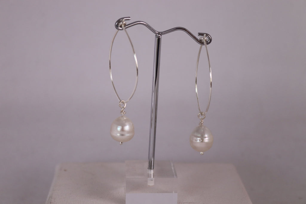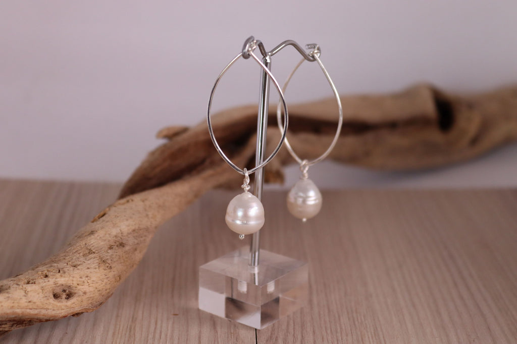 Pearl and silver hoop earrings