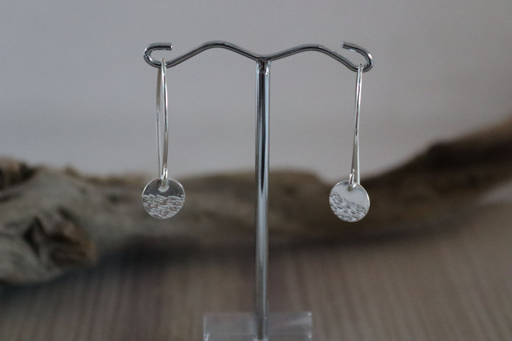 Silver drop earrings with hammered disc