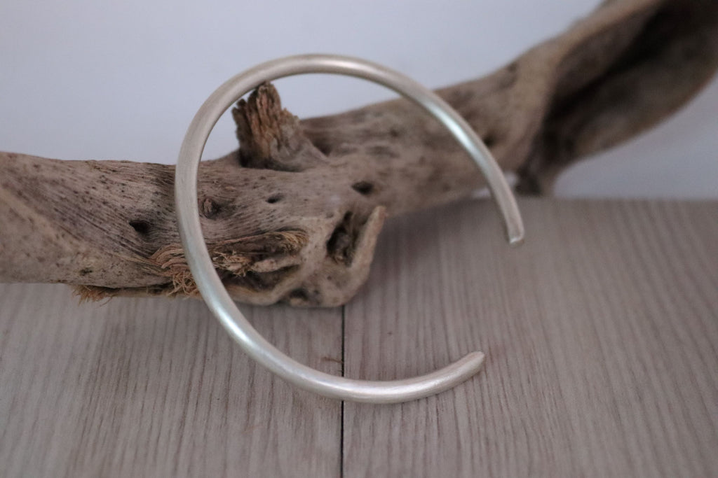 Simple open bangle made using 4.5mm wire polished then given a satin finish. Perfect anniversary or Christmas gift for him or her. This is a large size, 70mm. Can be custom made for size and polish finish, please leave your details on my custom page and I'll be in touch, Allow one week for it to be made. Thank you
